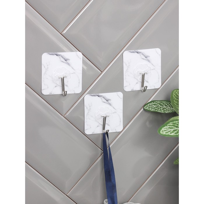 Крючки на липучке "Мрамор" 3 шт, белый 9826610 в Хабаровск