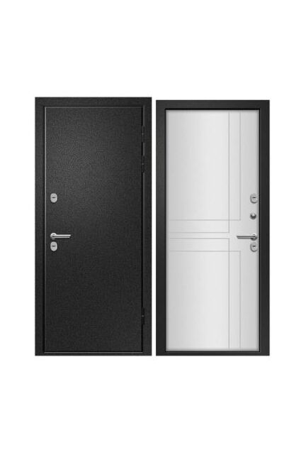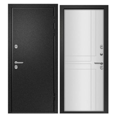 Петли - евро 3 шт.Размеры 960х2050. Производитель Фабрика «Ретвизан». Толщина полотна - 120 мм. Глубина коробки - 160 мм. Внешнее покрытие трехслойное полимерное покрытие Букле черный. Внутреннее покрытие МДФ 16 мм с фрезерованным рисунком. Толщина металла 1,4 мм. Наполнение экструдированный пенополистирол. Уплотнитель 3 контура (1 магнитный). Основной замок BORDER 3В 9-6Г (сувальдный). Дополнительный замок BORDER ЗВ 8-6/Б5Т (сувальдный). Броненакладка - есть. Ночная задвижка - есть. Фурнитура хром. Терморазрыв на полотне и коробке. Нержавеющий порог - да.