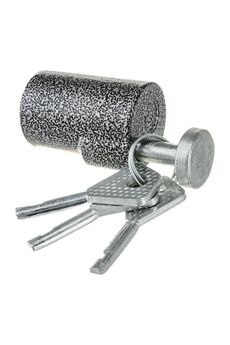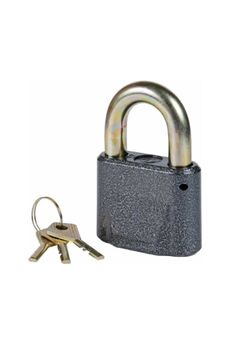 Компактный и прочный навесной замок из стали с цилиндровым механизмом, надежно защищает гаражи, ворота и фургоны от взлома и коррозии.