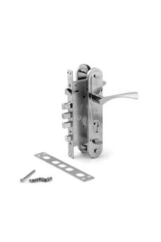 Сувальдный врезной замок, 4 стальных ригеля, универсальный монтаж, серебристое покрытие, высокий уровень защиты для дверей.