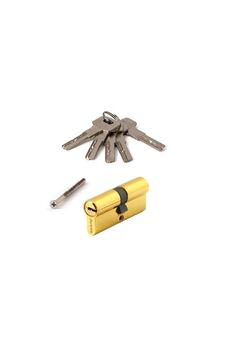 Цилиндровый механизм секретности, тип цилиндрового механизма: евроцилиндр. Типоразмер цилиндра: 35/35 мм. Материал цилиндра и сердечкая: ЦАМ. Цилиндровый механизм, длина 70 мм, ключ-ключ, латунный корпус, 5 ключей, золотистый цвет, базовая взломостойкость, для дверей разного типа.