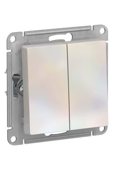 Двойной выключатель с элегантной жемчужной отделкой, скрытый монтаж, высокая износостойкость и удобство управления двумя зонами света.