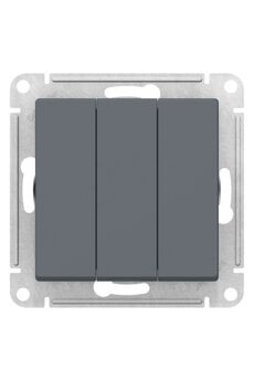Трёхклавишный механизм, прочный корпус, современный грифельный цвет, идеально для контроля трёх зон освещения в доме или офисе.