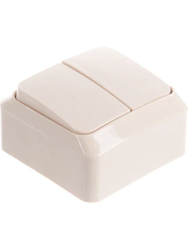 Надёжный выбор для управления освещением в жилых и коммерческих помещениях – двухклавишный выключатель открытой установки 10А кремового цвета серии Этюд SE, артикул BA10-002k. Отлично подходит для быстрого и аккуратного монтажа на стены без встраивания и скрытия проводки.