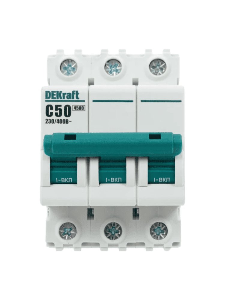 Надежная защита электросети: устройство обеспечивает мгновенное отключение при перегрузках и коротких замыканиях, идеально подходит для промышленных и бытовых электрощитов. Модульный формат облегчает интеграцию в стандартные монтажные шины. Автоматический выключатель рассчитан на ток до 50А, срабатывает на кривой C при импульсных нагрузках, выдерживает ток короткого замыкания до 4,5кА.
