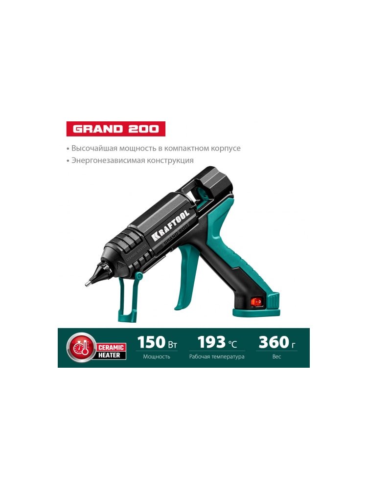 - Мощность: 150 Вт — быстрый разогрев и уверенная подача клея