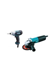Набор Makita DK0169 включает в себя ударный шуруповерт TD0101 и углошлифовальную машину 9555HN. Ударный шуруповерт Makita TD0101 предназначен для заворачивания и выворачивания шурупов, также его можно использовать при сверлении. Наличие окружного удара позволяет развивать момент затяжки до 100 Нм. Дополнительные характеристики Мощность: 230 Вт Крепежный винт - М4-М10 Стандартный болт - М5-М14 Высокопрочный болт - М5-М10 Длина закручиваемого винта с крупной резьбой до 90 мм Углошлифовальная машина Makita 9555HN может применяться в строительных работах для шлифовки, резки или очистки металлических изделий. Инструмент оснащен двигателем мощностью 710 Вт, защищенным от пыли, и диском диаметром 125 мм. Небольшие габариты и малый вес позволяют работать инструментом одной рукой. Дополнительные характеристики Мощность: 710 Вт Диаметр диска: 125 мм Число оборотов: 10000 об/мин Мощный набор: УШМ 710 Вт (125 мм) и ударный шуруповерт 100 Нм — для быстрой сборки, монтажа и резки разн