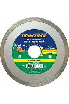 Серия «Мастер». Тип 1A1R. Сегмент 7 мм. ГОСТ 10110-87. Алмазные диски для пиления керамической и мраморной облицовочной плитки. Очень высокая скорость резания. Для ручного электроинструмента и станков. Работа с охлаждением водой. Не для керамогранита. Несегментный алмазный диск 125x22 мм для точной резки керамики и плитки без сколов, совместим с УШМ, отличается надежностью и чистотой работы.