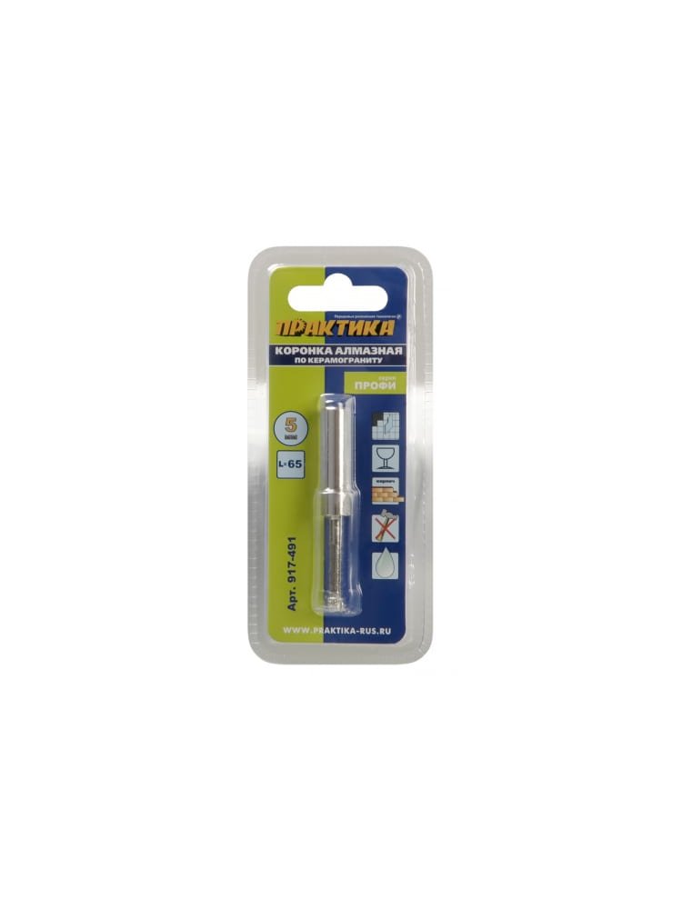 Откройте новые возможности точного сверления с помощью алмазной коронки 5 мм Profi — идеального выбора для обработки керамогранита, керамики и других прочных облицовочных материалов. Этот инструмент отличает профессиональное качество, высокая износостойкость и эффективность, позволяющие выполнять аккуратные и чистые отверстия при облицовочных и отделочных работах.