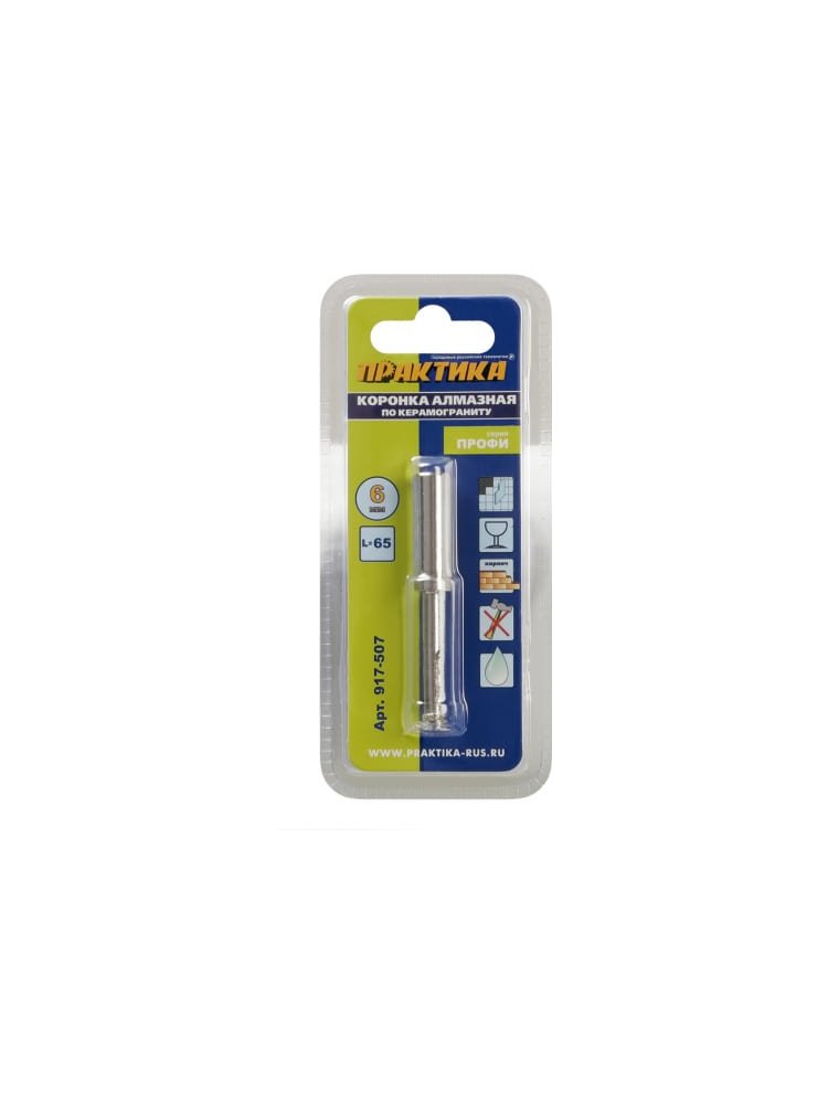 Профессиональное сверление подрозетников и отверстий в керамограните и керамике — легко и точно! Алмазная коронка 6 мм предназначена для аккуратной работы с твёрдыми облицовочными материалами: плиткой, мрамором, фарфором, стеклом. Идеально подходит для монтажа розеток, сантехники, систем "теплый пол" и других инженерных решений.