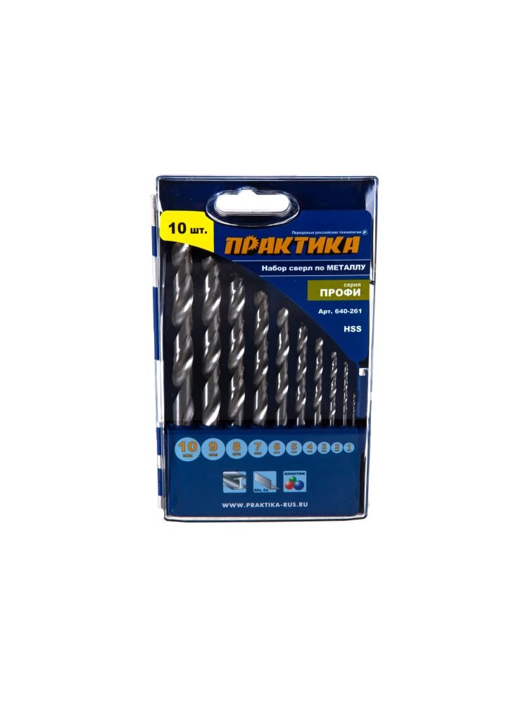 - Набор из 10 сверл с диаметрами от 1 до 10 мм (шаг 1 мм).