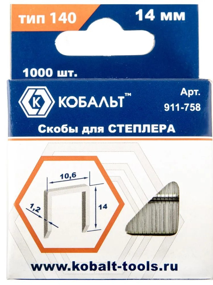- Длина скобы: 14 мм — обеспечивает глубокое и прочное крепление.