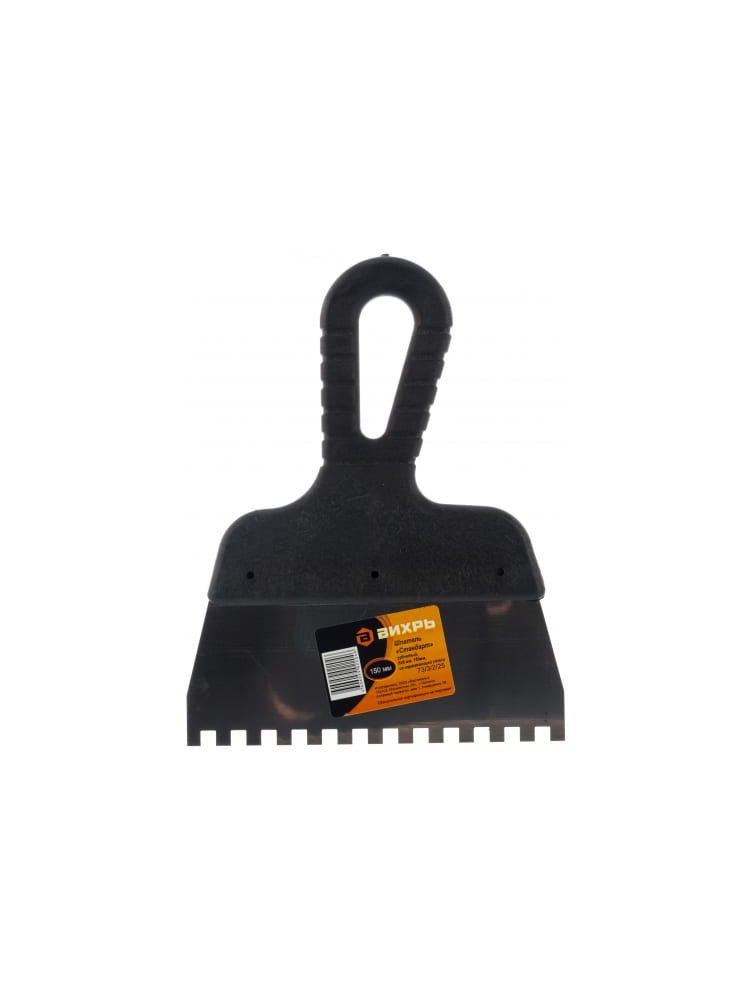 Оптимальный выбор для качественной укладки плитки и нанесения строительных смесей: изделие сочетает долговечную нержавеющую сталь полотна с удобной пластиковой рукояткой, обеспечивая точное и равномерное распределение клея.