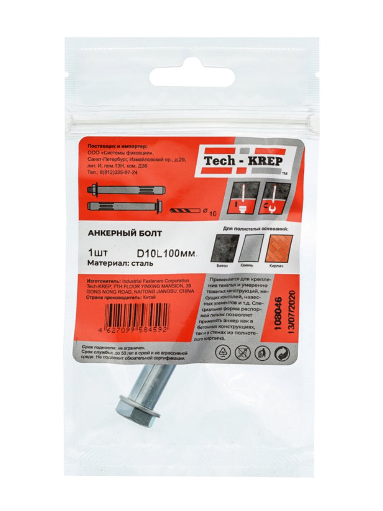 Анкерный болт 10х100 мм от Tech-Krep представляет собой надежное крепежное изделие, предназначенное для создания прочных соединений в строительных конструкциях. Изготовлен из высококачественной стали с антикоррозийным покрытием, что обеспечивает долговечность и устойчивость к внешним воздействиям. Диаметр 10 мм и длина 100 мм позволяют использовать его для крепления тяжелых элементов к бетонным, кирпичным или каменным основаниям. Конструкция болта с распорным механизмом гарантирует надежную фиксацию даже в условиях высоких нагрузок. Поставляется в удобной упаковке по 1 штуке, что подходит для небольших ремонтных или строительных задач.
