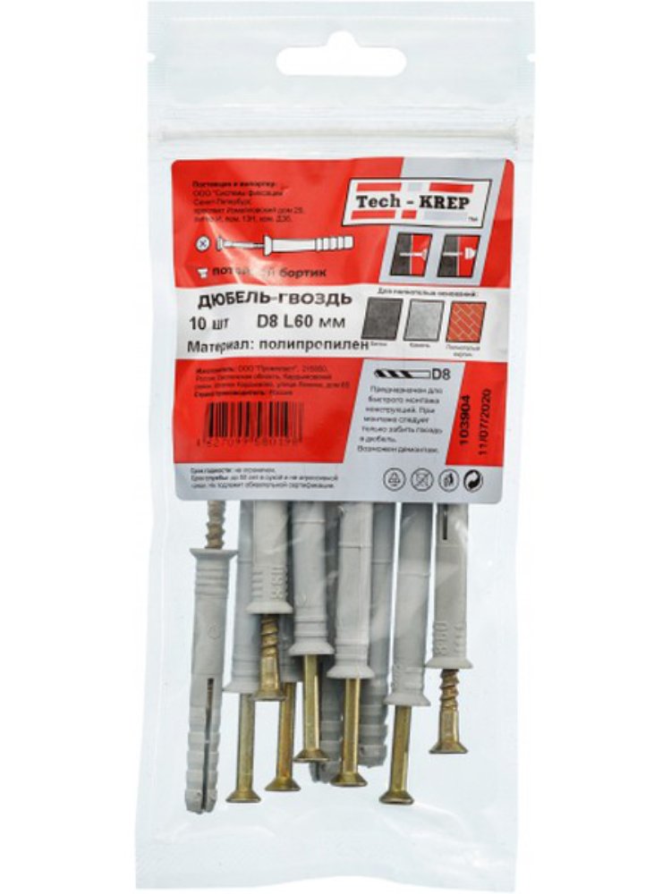 Дюбель-гвоздь 8х60 с потайной манжетой изготовлен из прочного полипропила, обеспечивая надежное крепление в различных строительных материалах. Комплект включает 10 штук, упакованных в удобный пакет, что упрощает хранение и транспортировку. Черный цвет изделия гармонично вписывается в дизайн конструкций, где важна эстетика соединений. Конструкция с потайной манжетой скрывает крепеж, создавая аккуратный внешний вид. Подходит для быстрого монтажа благодаря простоте установки.