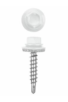 Стальные саморезы с шестигранной со сверловидным наконечником, укомплектованные шайбой с резинкой, для крепления кровельных материалов к деревянной обрещетки. Усиленный саморез 4,8×35 мм с белым полимерным покрытием для кровли, устойчив к коррозии, с герметичной шайбой, надёжен для крепления металла.