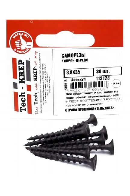 Саморез по дереву 3,8х35 (30 шт) - пакет Tech-Krep в Хабаровск