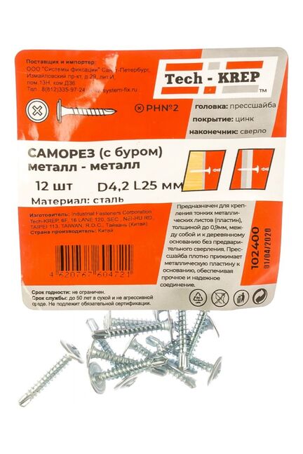 Саморез с п/ш св. 4,2х25 (12 шт) - пакет Tech-Krep в Хабаровск
