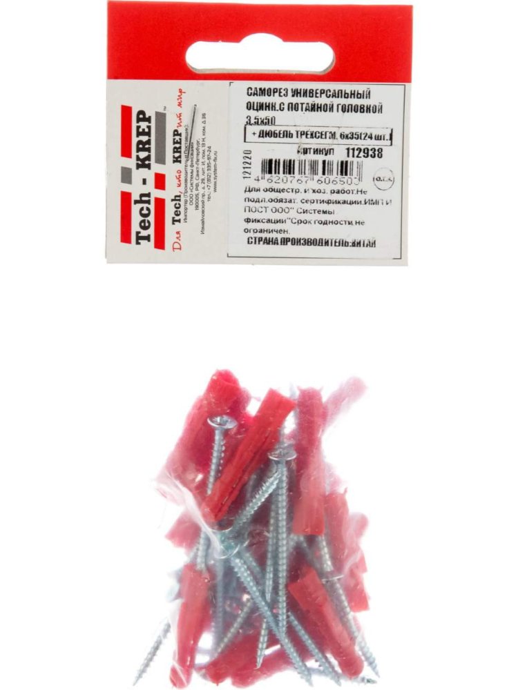 - Улучшенная фиксация за счет трехсегментной конструкции дюбеля