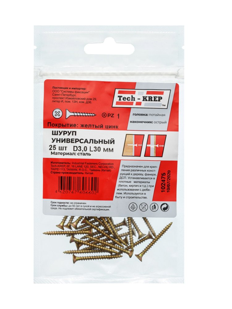 - Размер: 3,0х30 мм, количество — 25 шт в пакете