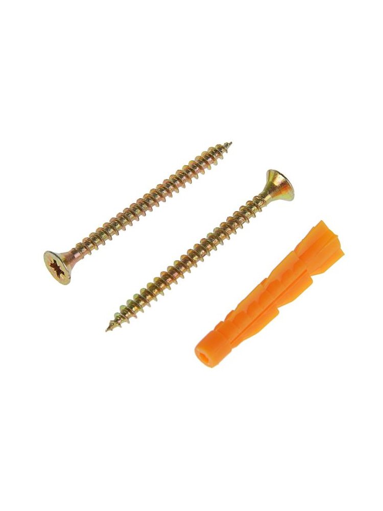 Надёжное крепление для различных строительных и отделочных работ: саморезы с потайной головкой и универсальные дюбели обеспечивают прочность фиксации в бетоне, кирпиче, гипсокартоне и других материалах. Комплект подходит для монтажа полок, карнизов, осветительных приборов и других интерьерных элементов.