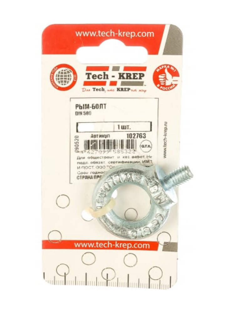 Рым-болт DIN580 М10 от Tech-Krep представляет собой надежный крепежный элемент, выполненный из углеродистой стали с цинковым покрытием, что обеспечивает высокую прочность и устойчивость к коррозии. Диаметр резьбы М10 позволяет использовать его для фиксации и подъемных операций с грузами весом до 230 кг при прямом подъеме. Конструкция болта предусматривает кольцо для удобного захвата тросов, цепей или карабинов, что делает его универсальным решением для различных задач. Метиз соответствует международным стандартам качества и рассчитан на длительный срок службы даже в условиях повышенной влажности.