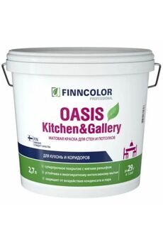 для стен и потолков в сухих и влажных помещениях (кроме ванных комнат) c высокой эксплуатационной нагрузкой (кухни, столовые, вестибюли, коридоры, помещения общественного и коммерческого назначения), требующих частой уборки. Расход 7-9 м²/л - по неровной впитывающей поверхности; 9-11м²/л - по ровной невпитывающей поверхности. Время высыхания 1,5-2 часа перед нанесением следующего слоя. Матовый. Матовая краска для кухни и столовой, устойчива к мытью, не пахнет, легко наносится, сохраняет долгую чистоту и свежий вид стен.