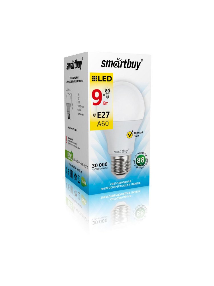 - Мощность: 9 Вт (аналог 75 Вт у лампы накаливания)