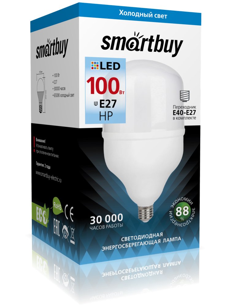 Мощная светодиодная лампа 100 Вт обеспечивает яркое, дневное освещение 6500K — отличный выбор для производственных, коммерческих и бытовых помещений, где требуется эффективное и экономичное освещение.