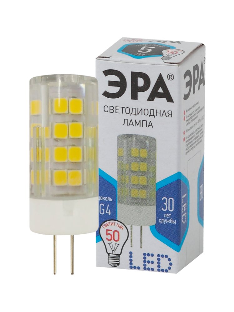 - Напряжение: 230 В — простая замена галогенных ламп G4