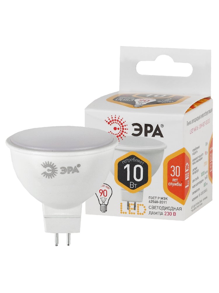 - Мощность — 10 Вт (аналог 80-90 Вт лампы накаливания)