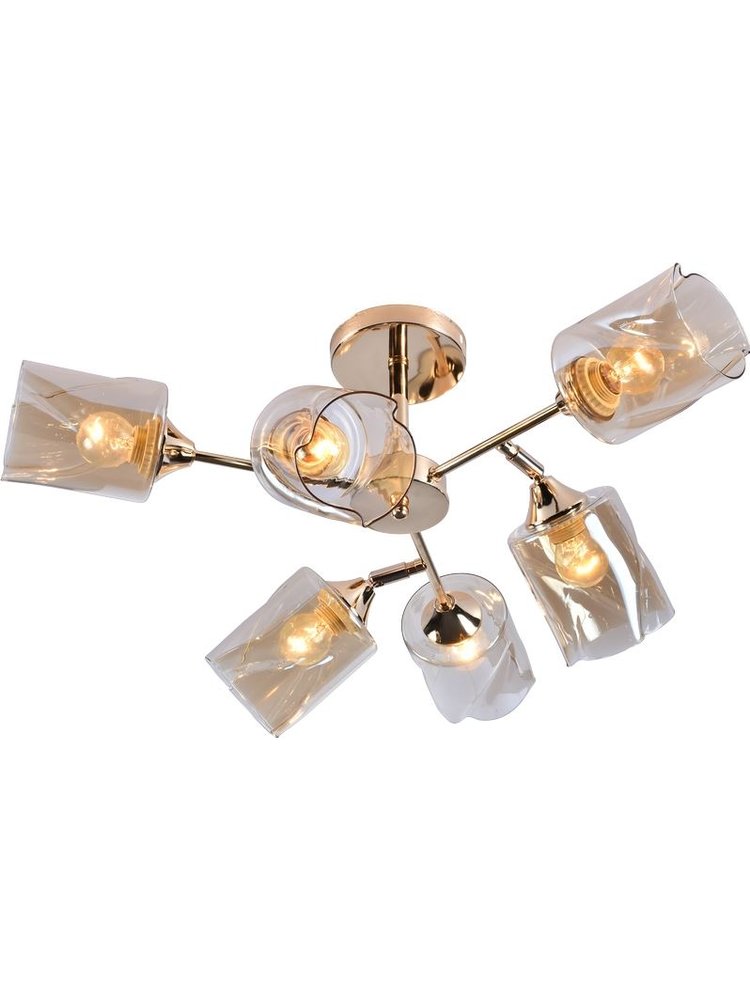 Подарите своему интерьеру утончённую элегантность и яркий свет! 6-ламповая люстра с эффектным золотым покрытием станет стильным акцентом для жилых, коммерческих и общественных пространств — гостиных, залов, спален, кафе и офисов. Универсальный патрон E27 позволяет выбирать лампы подходящей мощности и цветовой температуры.