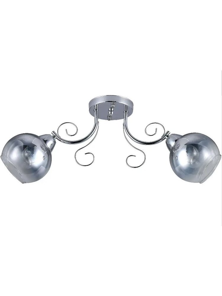Классическая люстра на 2 лампы с матовыми плафонами и хромированным корпусом, для помещений до 12 м². Подходит под лампы E27 любой категории.