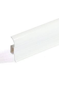 Утонченный и высокий профиль (58 мм) с острыми краями. Благодаря съёмной панели монтаж электрических проводов, покраска стен, оклеивание обоями возможны без демонтажа профилей. Конструкция позволяет монтировать и демонтировать плинтус без использования инструментов. Существует возможность размещения большого количества проводов, в том числе после монтажа. Специальная двухслойная технология: помимо слоя краски, дополнительно покрывается специальным лаком, благодаря чему его покрытие становится однородным, а это дополнительно защищает изделие от разного вида механических повреждений и вредного воздействия лучей УФ. Благодаря эластичному материалу, плинтус идеально прилегает даже к неровностям стен и полов. Белый пластиковый плинтус 58 мм, длина 2,2 м, скрывает кабели, устойчив к влаге и механическим воздействиям, легко монтируется и долговечен.