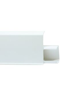 Утонченный и высокий профиль (72 мм) с острыми краями. Благодаря съёмной панели монтаж электрических проводов, покраска стен, оклеивание обоями возможны без демонтажа профилей. Конструкция позволяет монтировать и демонтировать плинтус без использования инструментов. Существует возможность размещения большого количества проводов, в том числе после монтажа. Специальная двухслойная технология: помимо слоя краски, дополнительно покрывается специальным лаком, благодаря чему его покрытие становится однородным, а это дополнительно защищает изделие от разного вида механических повреждений и вредного воздействия лучей УФ. Благодаря эластичному материалу, плинтус идеально прилегает даже к неровностям стен и полов. Белый ПВХ-плинтус 72 мм, 2,2 м с кабель-каналом, влагостойкий, для аккуратной отделки пола и скрытия зазоров, легкий монтаж и уход.
