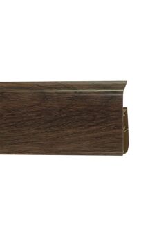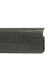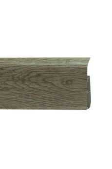 Утонченный и высокий профиль (58 мм) с острыми краями. Благодаря съёмной панели монтаж электрических проводов, покраска стен, оклеивание обоями возможны без демонтажа профилей. Конструкция позволяет монтировать и демонтировать плинтус без использования инструментов. Существует возможность размещения большого количества проводов, в том числе после монтажа. Специальная двухслойная технология: помимо слоя краски, дополнительно покрывается специальным лаком, благодаря чему его покрытие становится однородным, а это дополнительно защищает изделие от разного вида механических повреждений и вредного воздействия лучей УФ. Благодаря эластичному материалу, плинтус идеально прилегает даже к неровностям стен и полов. Плинтус 58 мм с кабель-каналом, в декоре дуб Пиреней. Стойкий к влаге и ударам. Легко устанавливается, скрывает провода. Длина — 2,2 м.