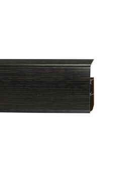 Утонченный и высокий профиль (80 мм) с острыми краями. Благодаря съёмной панели монтаж электрических проводов, покраска стен, оклеивание обоями возможны без демонтажа профилей. Конструкция позволяет монтировать и демонтировать плинтус без использования инструментов. Существует возможность размещения большого количества проводов, в том числе после монтажа. Специальная двухслойная технология: помимо слоя краски, дополнительно покрывается специальным лаком, благодаря чему его покрытие становится однородным, а это дополнительно защищает изделие от разного вида механических повреждений и вредного воздействия лучей УФ. Благодаря эластичному материалу, плинтус идеально прилегает даже к неровностям стен и полов. Широкий и прочный плинтус с элегантной отделкой "Венге Цаво", скрывает зазоры, прост в установке, подходит под любые покрытия и позволяет спрятать провода.