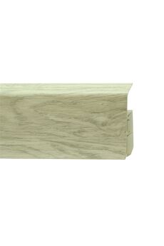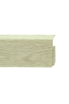 Утонченный и высокий профиль (80 мм) с острыми краями. Благодаря съёмной панели монтаж электрических проводов, покраска стен, оклеивание обоями возможны без демонтажа профилей. Конструкция позволяет монтировать и демонтировать плинтус без использования инструментов. Существует возможность размещения большого количества проводов, в том числе после монтажа. Специальная двухслойная технология: помимо слоя краски, дополнительно покрывается специальным лаком, благодаря чему его покрытие становится однородным, а это дополнительно защищает изделие от разного вида механических повреждений и вредного воздействия лучей УФ. Благодаря эластичному материалу, плинтус идеально прилегает даже к неровностям стен и полов. Плинтус 80 мм с реалистичной фактурой льняного дуба, устойчив к влаге и механическим нагрузкам, с кабель-каналом, лёгкий монтаж.