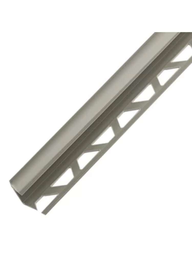Совершенный способ аккуратно оформить внутренние углы при облицовке кафельной плиткой — универсальный уголок серого цвета. Идеально подходит для маскировки и защиты краев плитки толщиной 9–10 мм, обеспечивает ровный и эстетичный стык и предотвращает появление сколов.