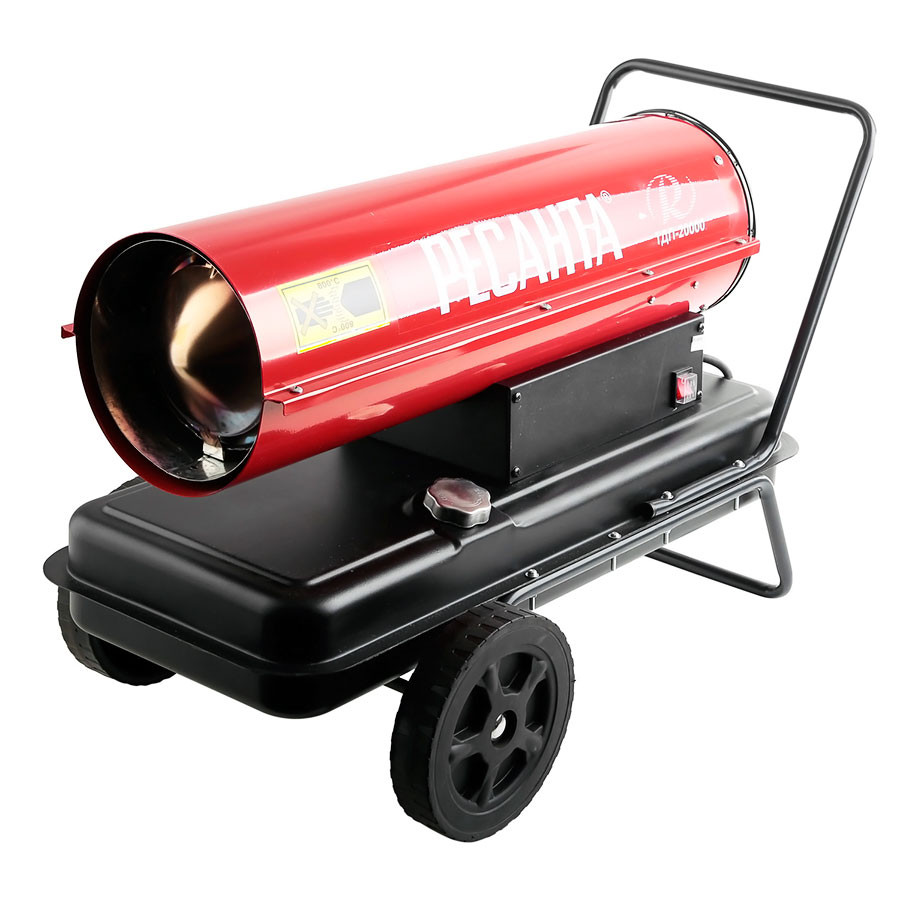 Тепловая пушка Ресанта ТДП-20000 предназначена для обогрева и применяется на строительных объектах, складских помещениях и цехах, в производственной сфере. Серия ТДП является пушкой с прямым нагревом воздуха, воздушная масса проходит непосредственно через камеру горения (пламя), там холодный воздух нагревается и выходит уже горячим, но при таком нагреве воздух смешивается с отходами горения (дым, запах) тем самым попадая в обогреваемое помещение. Дизельная тепловая пушка мощностью 20 кВт для обогрева больших помещений. Экономичный расход топлива 1,7 л/ч, прочный корпус, защита от перегрева.