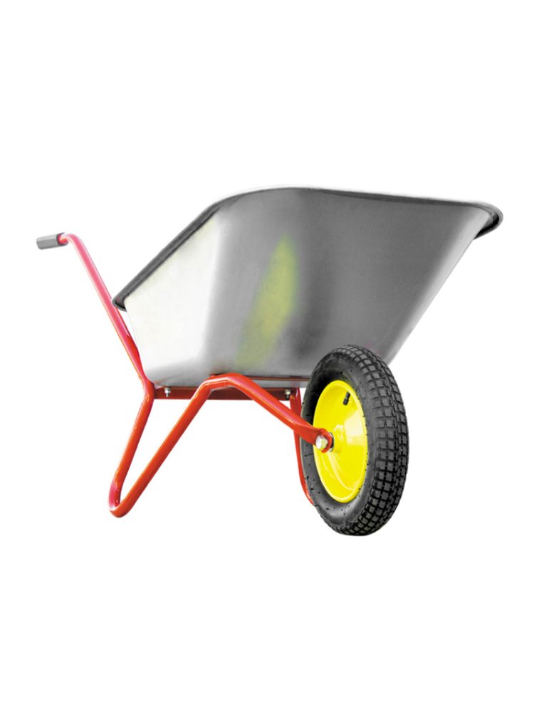 - Объемный кузов из стали облегчает переноску затяжёлых и сыпучих материалов