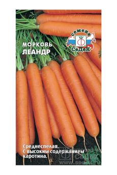 Среднеспелые семена моркови, отлично подходят для свежего потребления и хранения. Урожайные, устойчивы к болезням, масса пакетика 2 г.