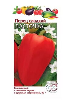 Семена раннеспелого сладкого перца Ласточка: крупные мясистые плоды, высокая всхожесть и устойчивость к болезням, подходит для теплиц и открытого грунта.