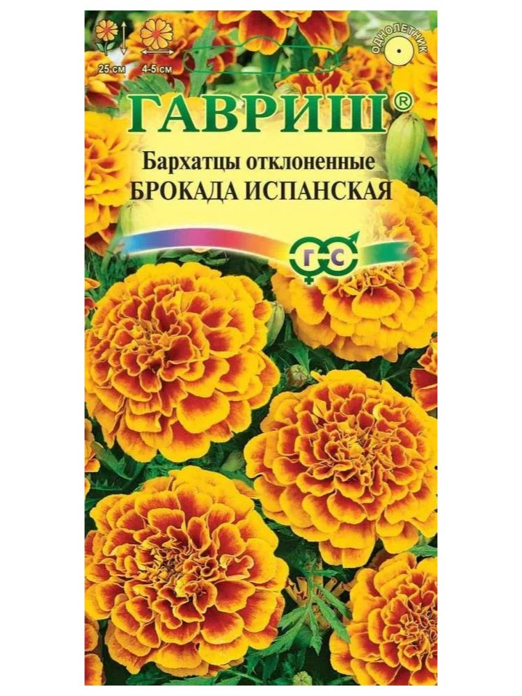 Добавьте ярких красок в ваш сад, палисадник или территорию вокруг дома с помощью декоративных однолетних цветов – идеальных для создания бордюров, клумб и контейнерных композиций. Бархатцы "Брокада испанская" отличаются невысокой компактной формой и пышным продолжительным цветением, что гарантирует эстетичный вид любой зоны отдыха или ландшафтного оформления.