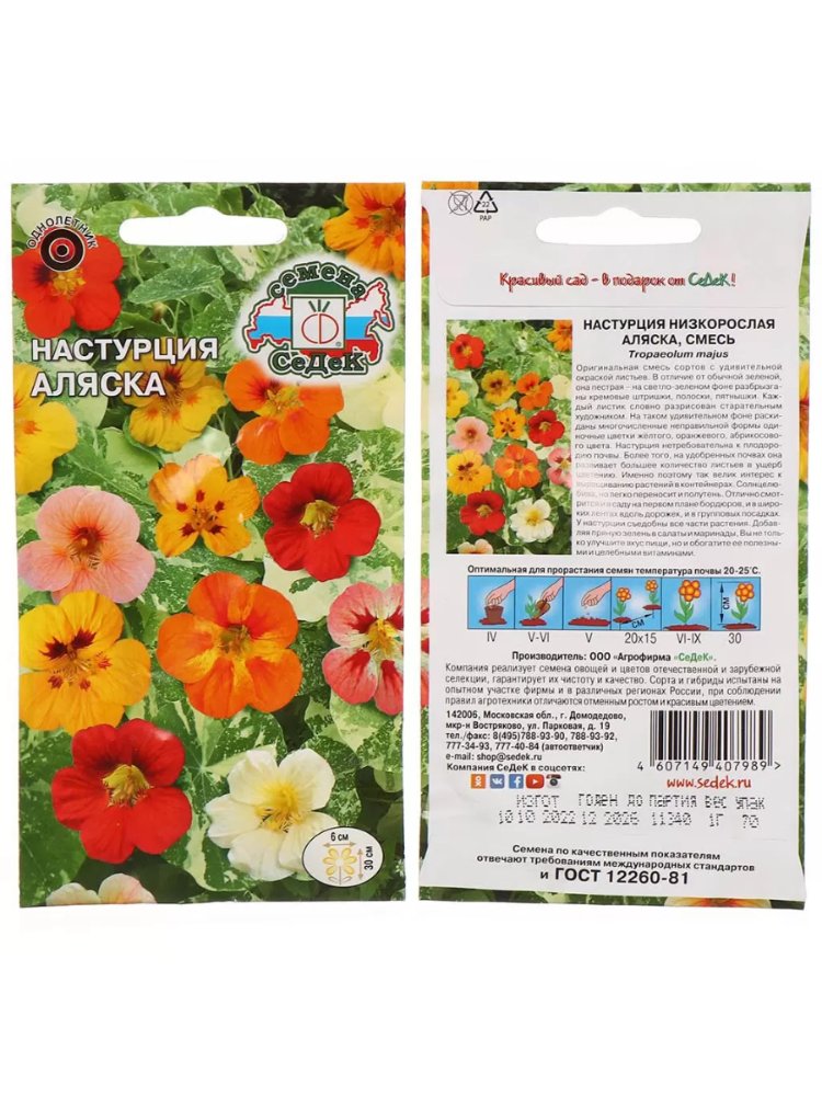 Добавьте ярких красок и свежести на приусадебный участок или в городской двор с универсальными семенами низкорослой настурции сорта «Аляска». Это идеальный выбор для озеленения строительных объектов, оформления вазы, балконов, дворов, территорий после ремонта и отделочных работ, создания цветочных бордюров и живых обрамлений. Благодаря компактным размерам растений (до 30 см) и необычным пестрым листьям, настурция превосходно украсит любой уголок, не требуя больших усилий по уходу.