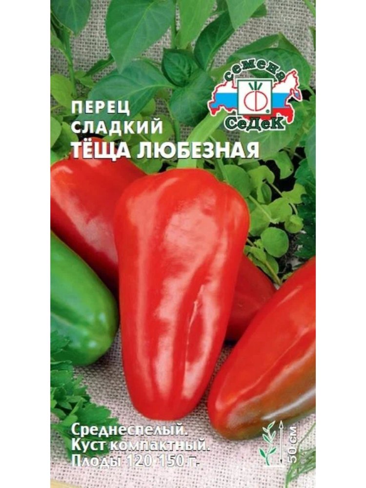 Семена перца сорта Теща Любезная от компании СеДеК представляют собой высококачественный посадочный материал для выращивания сладкого перца. Этот сорт отличается ранним сроком созревания (110-115 дней) и высокой урожайностью. Плоды имеют конусовидную форму, гладкую поверхность, ярко-красный цвет в спелом виде и массу до 150-200 г. Толщина стенок достигает 6-8 мм, что делает перец сочным и мясистым, с отличным сладким вкусом. Растение компактное, высотой до 70 см, что упрощает уход. Подходит для выращивания как в открытом грунте, так и в теплицах. Семена обладают хорошей всхожестью при правильной агротехнике.