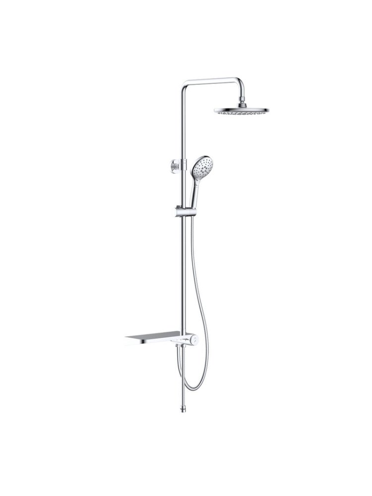 Подарите своему душу ежедневный комфорт с продуманным душевым гарнитуром, который включает верхний тропический душ, удобную полку для аксессуаров и стильную хромированную поверхность – идеальный выбор для современной ванной комнаты любого размера.