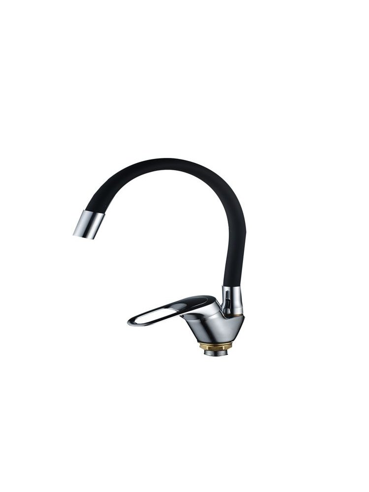 Стильный однорычажный смеситель с черным гибким изливом — современное решение для кухни, обеспечивающее комфортное использование при установке на мойке или столешнице. Отличный выбор для ежедневного мытья посуды, овощей и наполнения посуды водой.