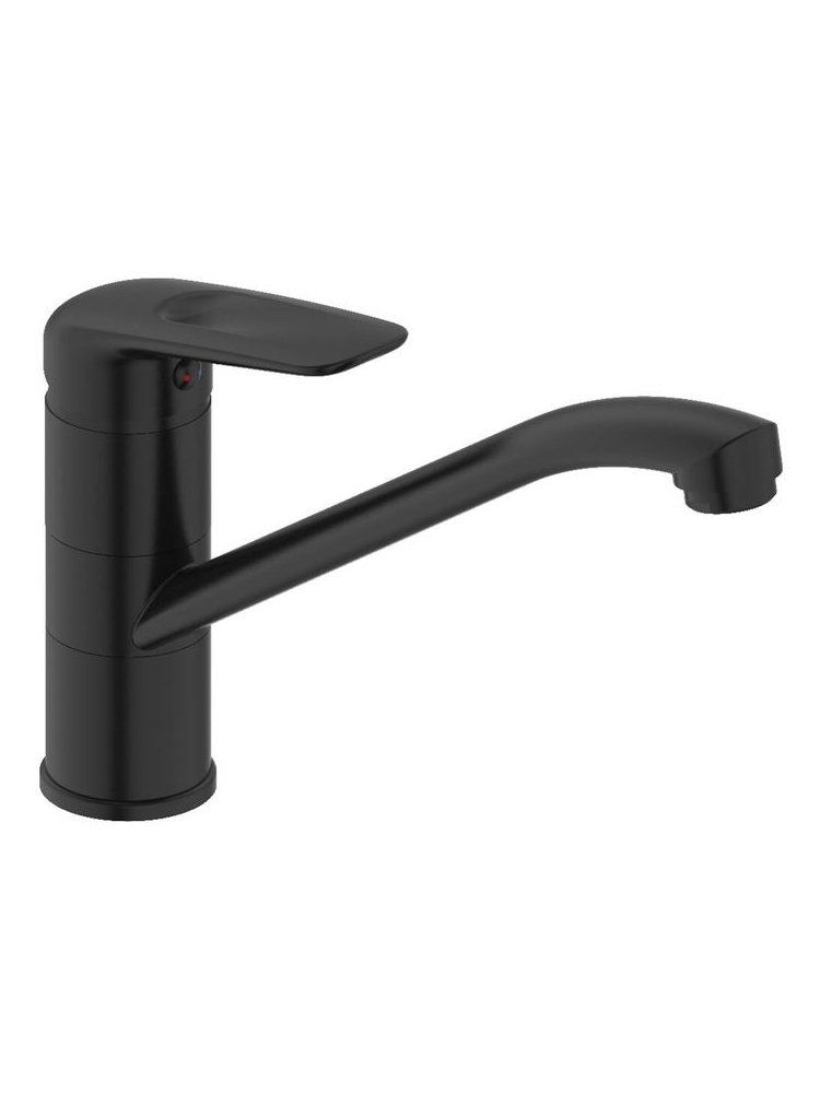 Современный однорычажный смеситель для кухни в матовом черном цвете идеально впишется в стильный интерьер и обеспечит комфорт при ежедневном использовании. Модель оснащена высоким поворотным изливом длиной 22 см, что обеспечивает легкий доступ к мойке и удобство мытья крупной посуды. Керамический картридж и латунный корпус гарантируют надежность и долговечность эксплуатации, а антигрязевое покрытие облегчает уход за смесителем. Универсальное подключение подходит для большинства кухонных коммуникаций. За счет эргономичного рычага обеспечивается плавная и точная регулировка температуры и напора воды.