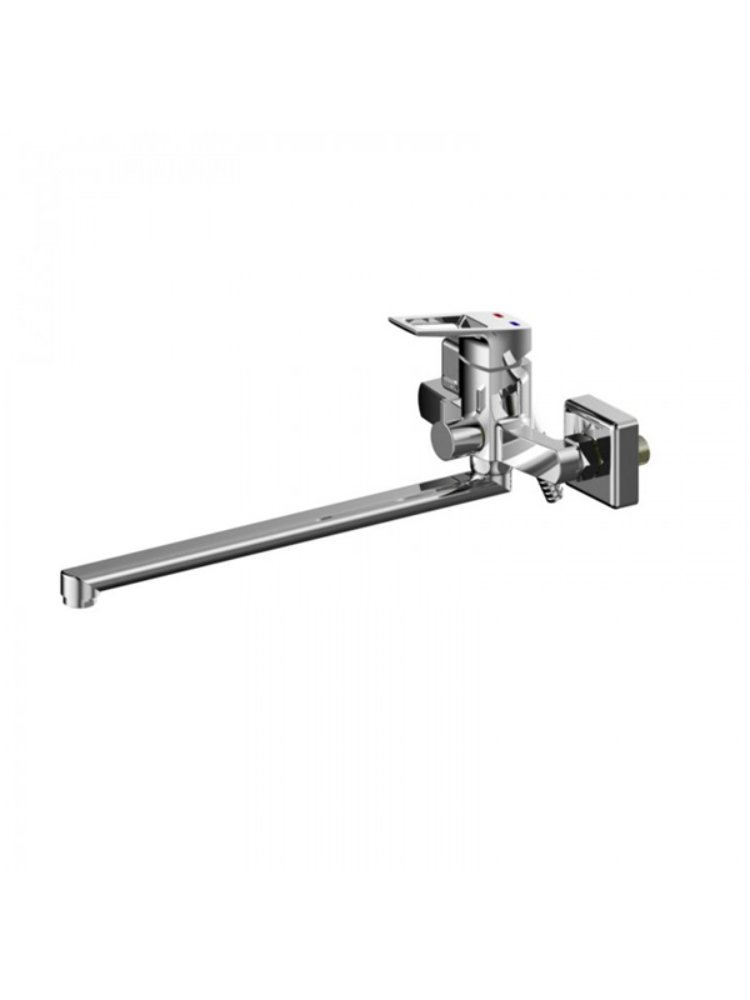 Смеситель для ванны с однорычажным управлением оснащён фиксированным поворотным изливом длиной 38,5 см, что облегчает наполнение ванны и мытьё. Изготовлен из прочной латуни с глянцевым хромированным покрытием, защищающим от коррозии и известковых отложений. Оборудован долговечным керамическим картриджем, благодаря которому регулировка напора и температуры воды происходит плавно и точно. Комплектация включает настенное крепление и эксцентрики для быстрого монтажа.